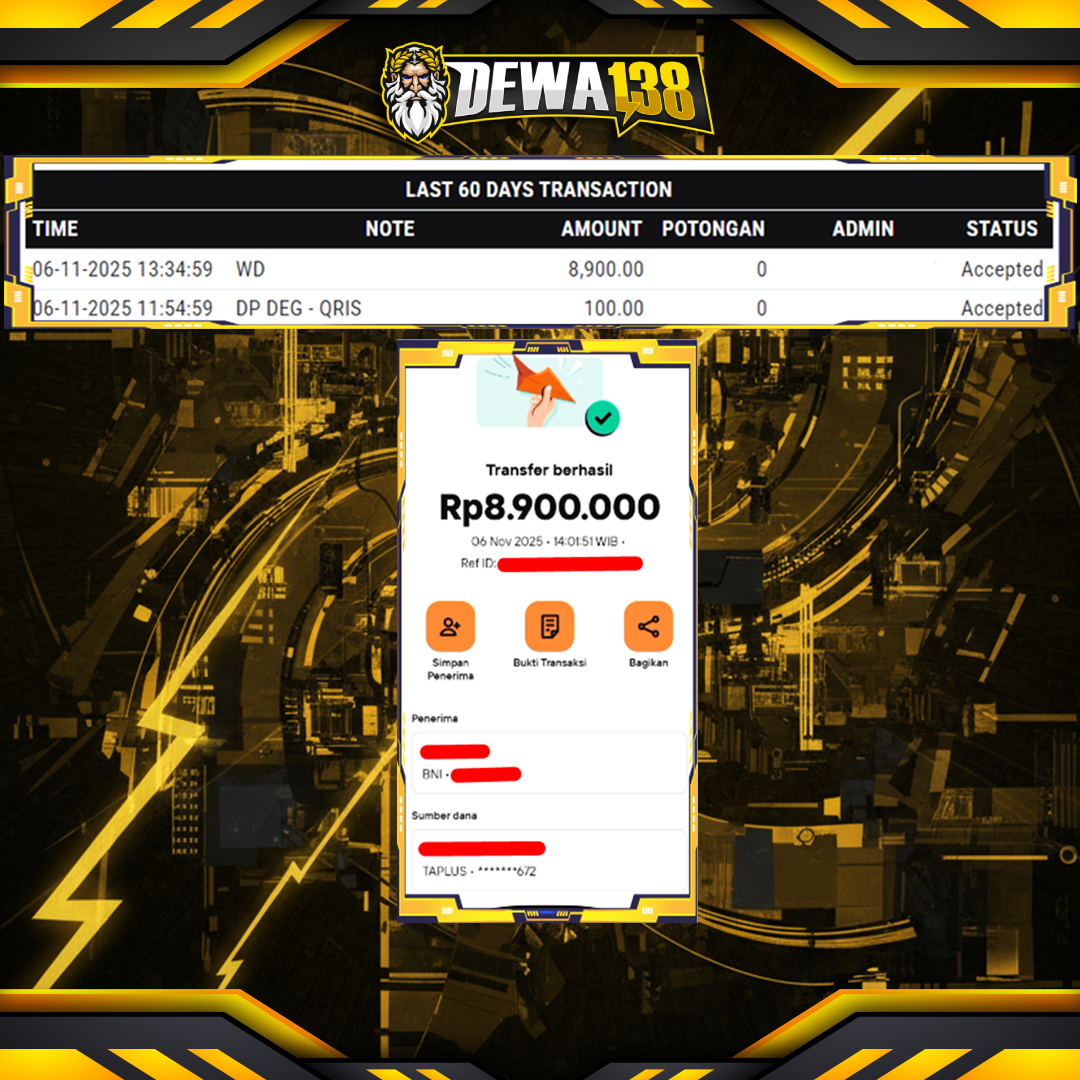 Sebagai bandar slot terpercaya, DEWA138 memadukan kecepatan transaksi, keamanan mutakhir, dan bonus konsisten. Sebuah ekosistem digital tempat kemenangan bukan sekadar harapan, tapi kebiasaan.